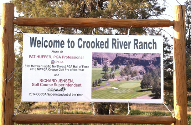 The folks had a banner made up and displayed it proudly when Huffer made the drive home. The banner welcomed people to Crooked River Ranch – home of PGA professional Pat Huffer, the 51st member to be inducted into the Hall of Fame.