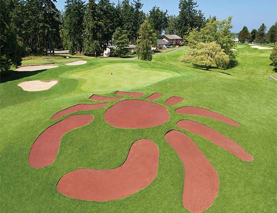 Golfers consistently praise the excellent course conditions, and lush fairways and firm, responsive greens. The layout is both strategic and scenic, offering views of the Olympic Mountains and a mix of elevation changes and undulating greens. The course features five sets of tees, accommodating all skill levels. Its signature crab shaped  bunkers (Ole Crabby) on hole #3 adds a memorable challenge.