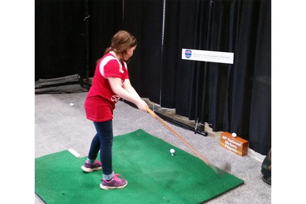 In addition to those who took their first swing nearly everyone who walked by the booth saw the antique demo hickory clubs and smiled. Some pointed to the wood shafted clubs with positive comments to their spouse or kids as they walked by, while others simply said to us volunteers “Love your clothes!”