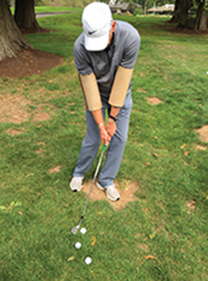 Big key here. Most poor to average pitchers of the golf ball create too many angles with their elbows folding and wrists hinging.