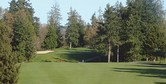 • Shuksan Golf Club: The Shuksan Golf Club in Bellingham, the theme is nature. There are wetlands throughout the golf course and the first bit of water trouble comes into play on the very first hole from an elevated tee.