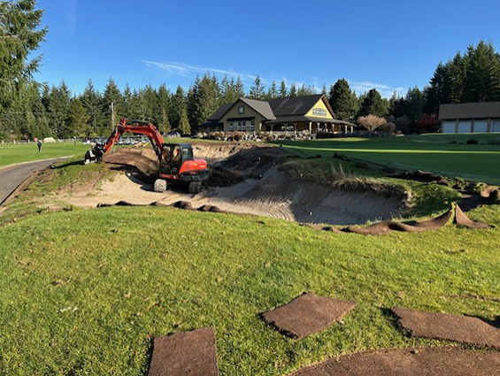 The contractor is Ridgetop Golf out of Gig Harbor that has an extensive portfolio of course construction projects throughout the Northwest and Western United States, with courses like Sunriver, Overlake, Chambers Bay, Aldera Golf Club, Indian Canyon, and many more.